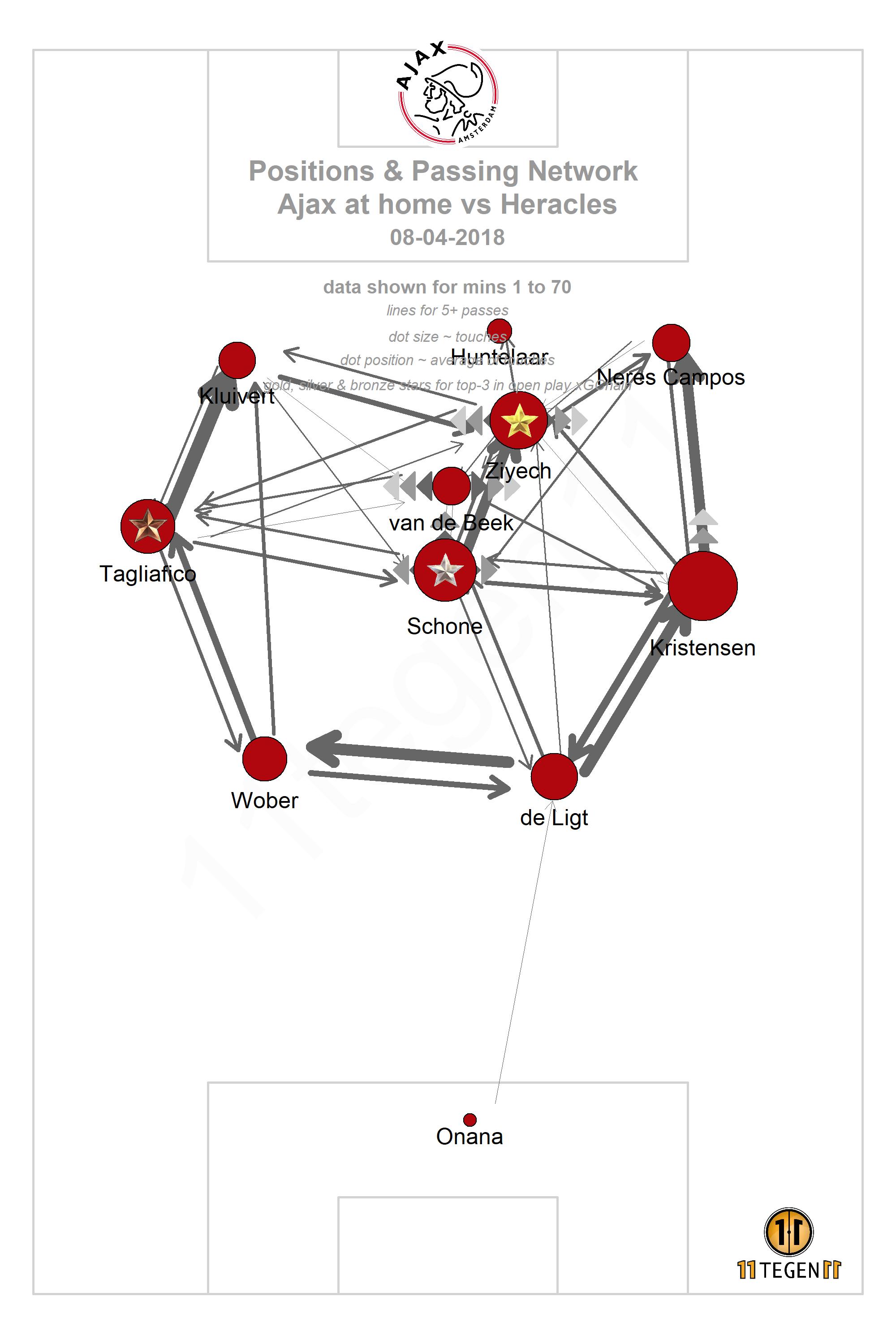 Goed te zien dat Ajax tegen Heracles veel beter stond dan eerdere wedstrijden. Kluivert en Neres mijns inziens nog steeds te diep, de ruimte tussen Ziyech en KJH klopt veel beter. |